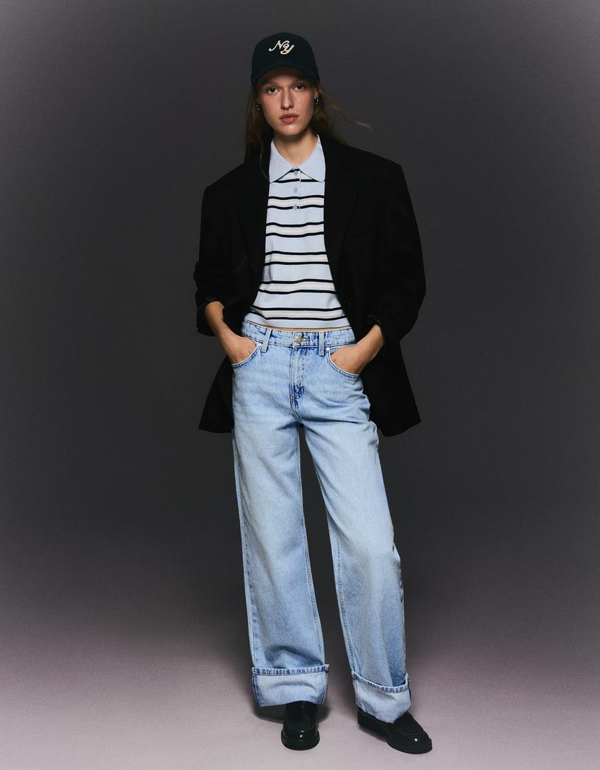 High-waist straight wide-leg jeans with turn-up hems