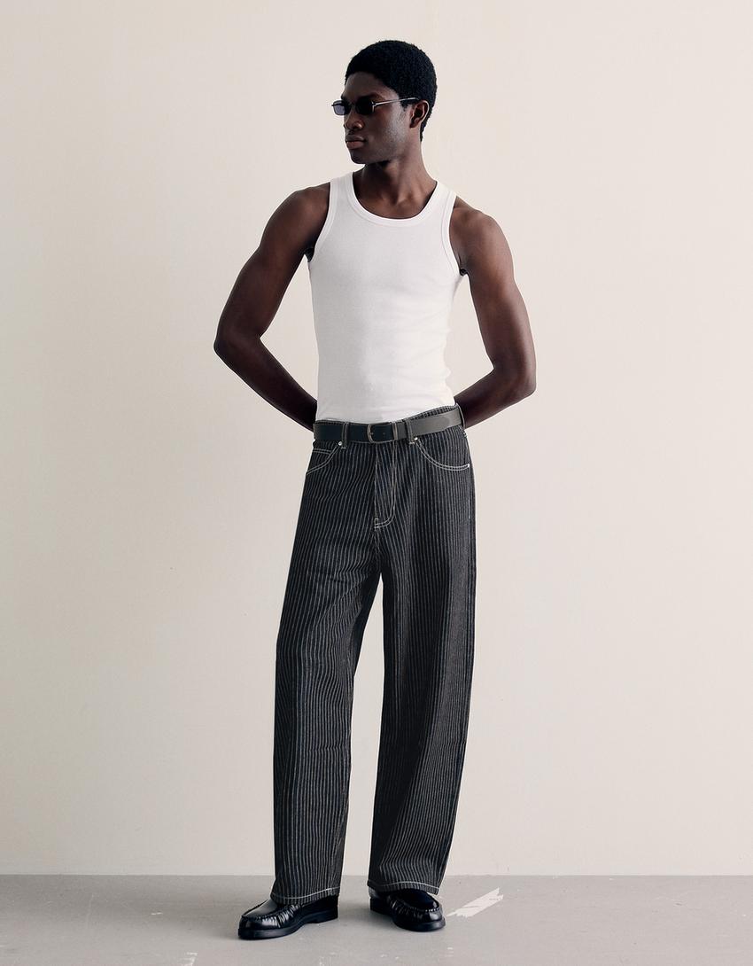 Striped barrel jeans