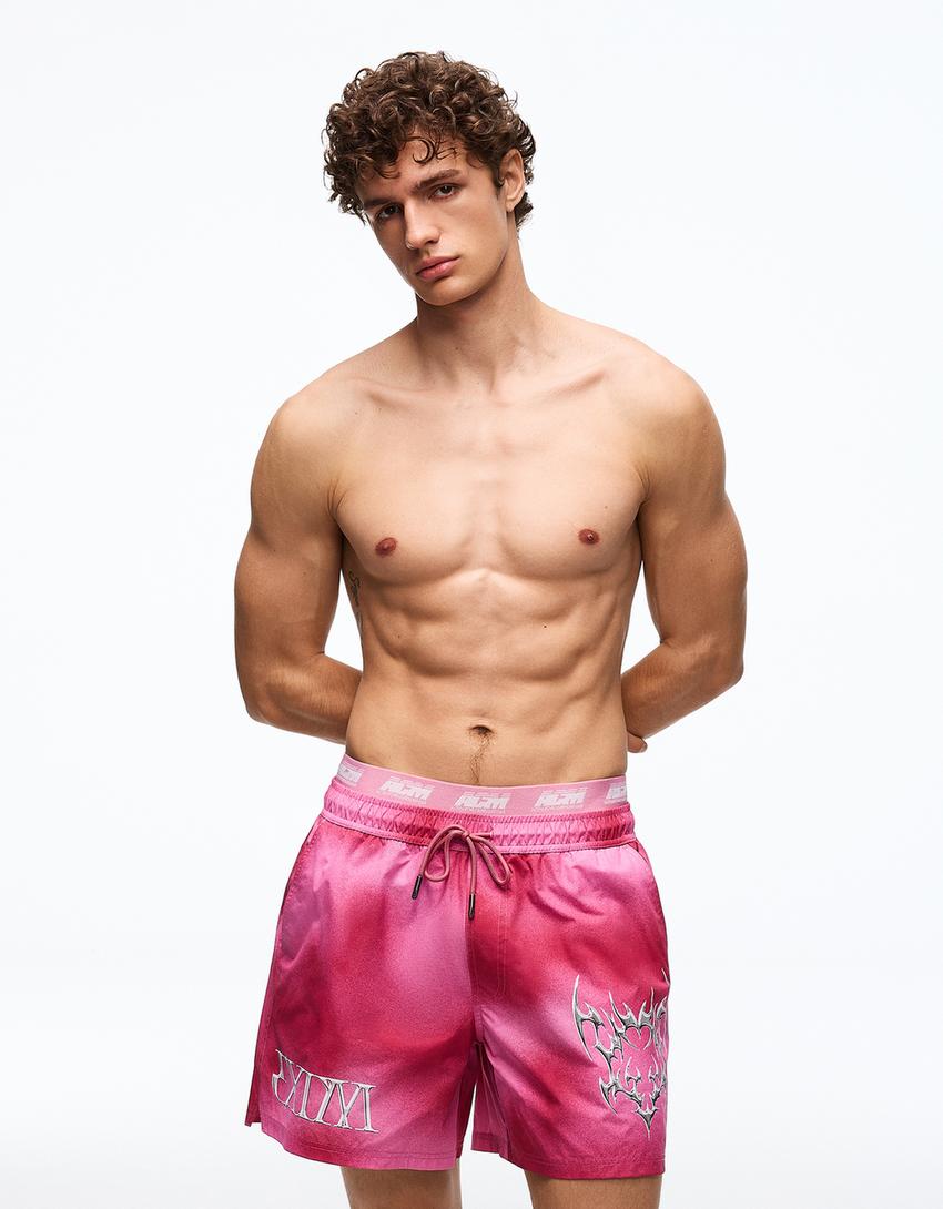 Printed boxy fit swimming trunks