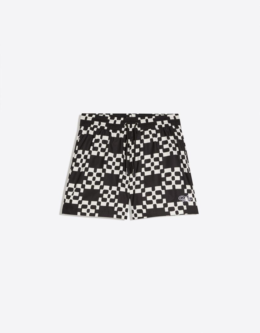 Printed boxy fit swimming trunks