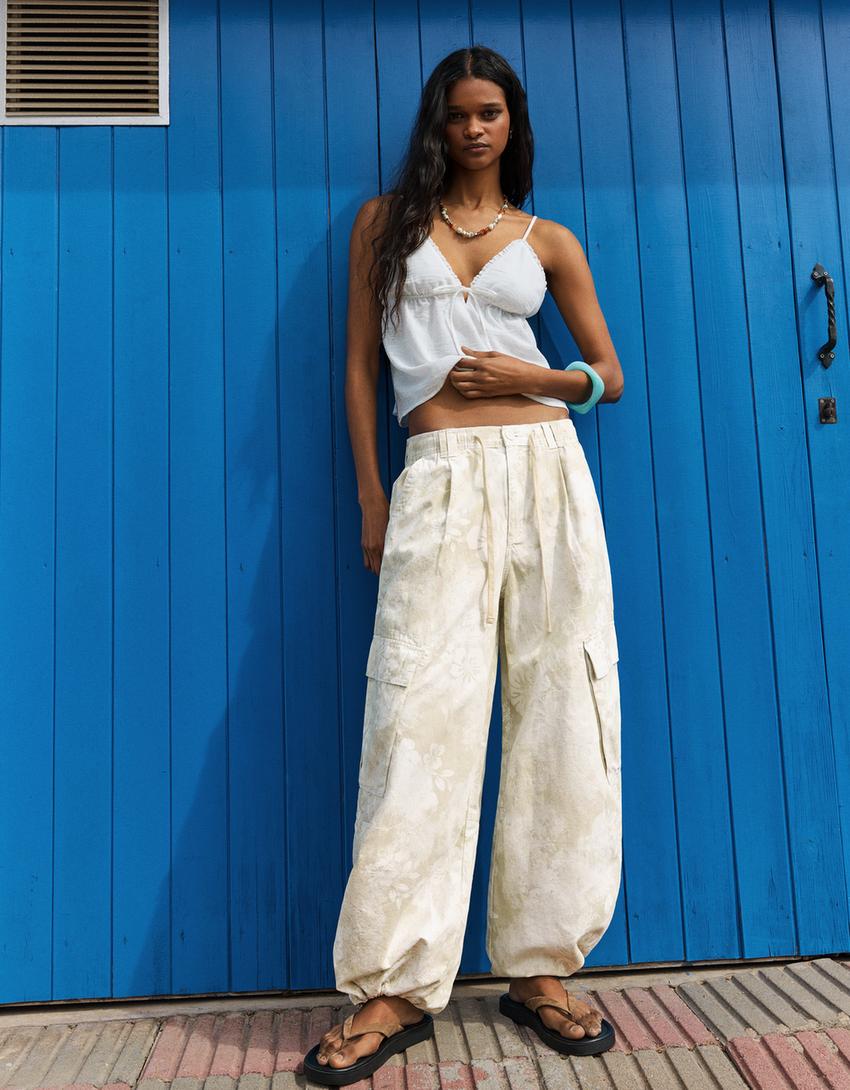 Printed cargo trousers