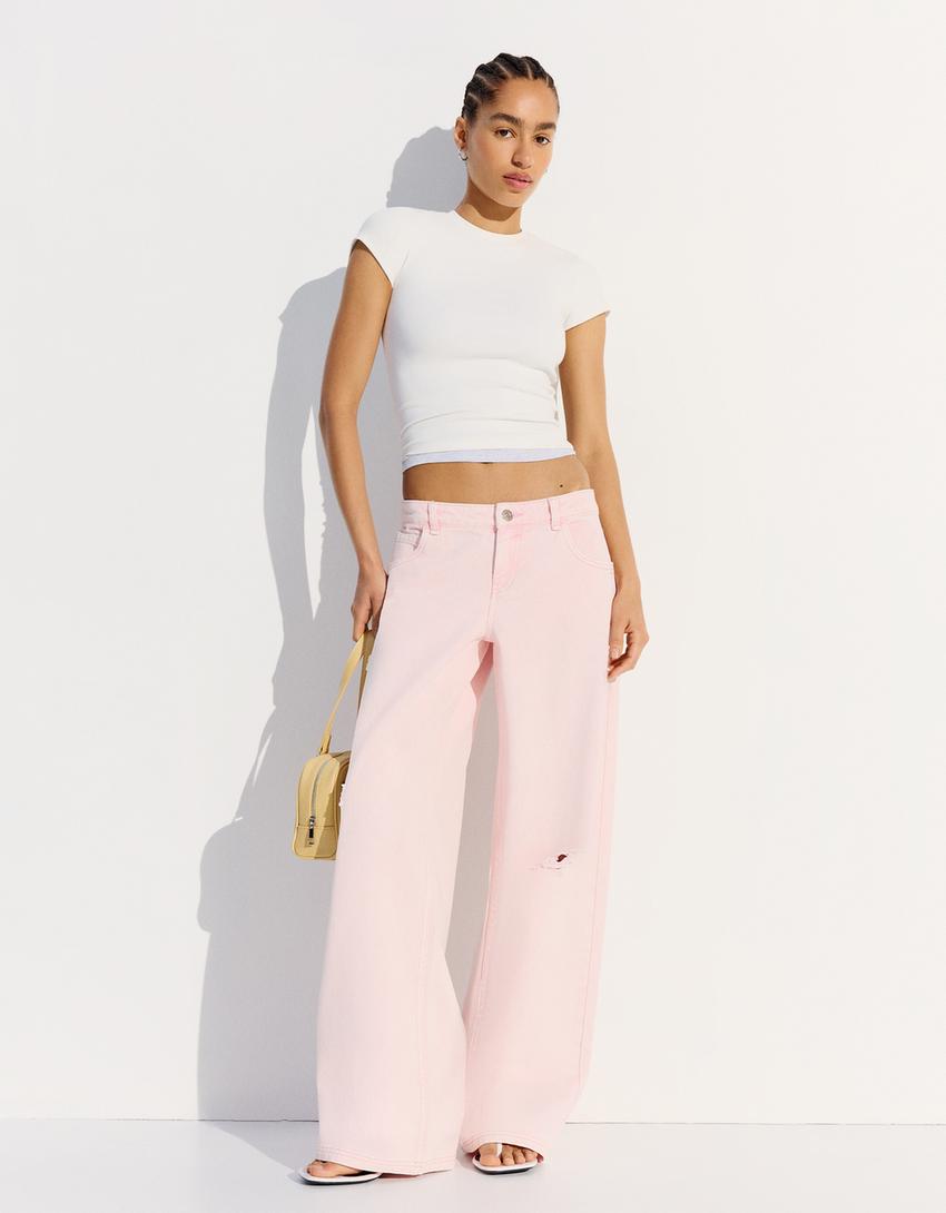 Ripped faded-effect trousers