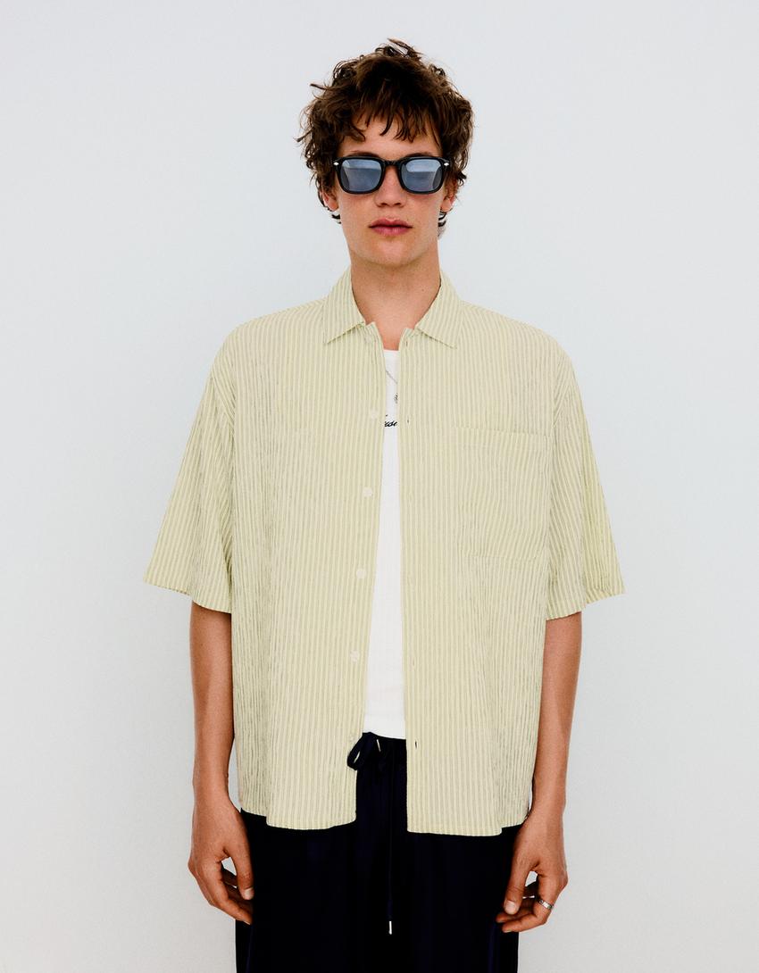 Striped boxy fit short sleeve shirt