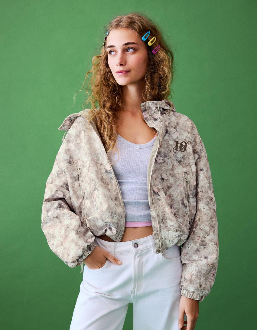 Water resistant & windproof print hooded jacket