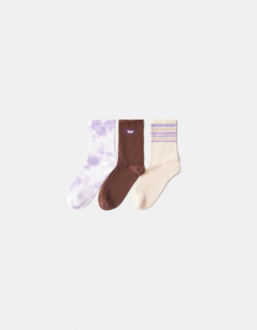 Pack de 3 pares de meias com tie dye