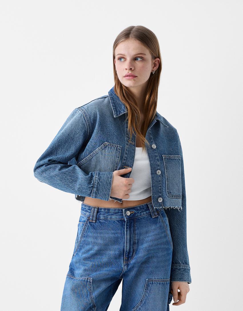 Casaco denim cropped workwear