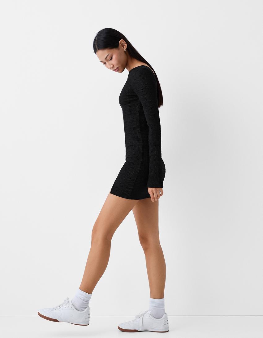 Vestido mini manga comprida efeito de waffle