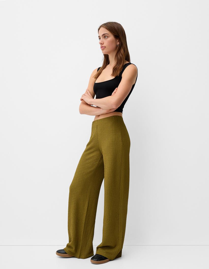 Calças wide leg waffle