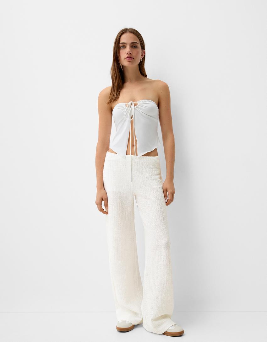 Calças wide leg waffle