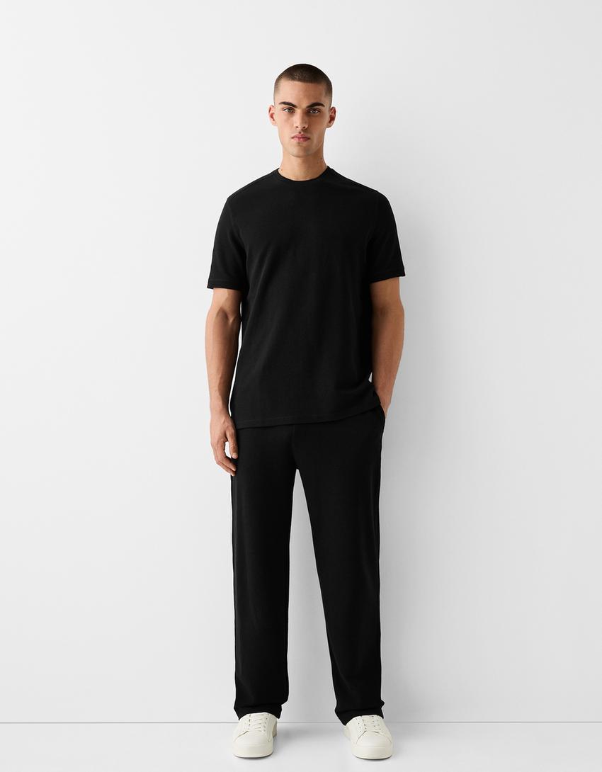 Textured wide-leg trousers