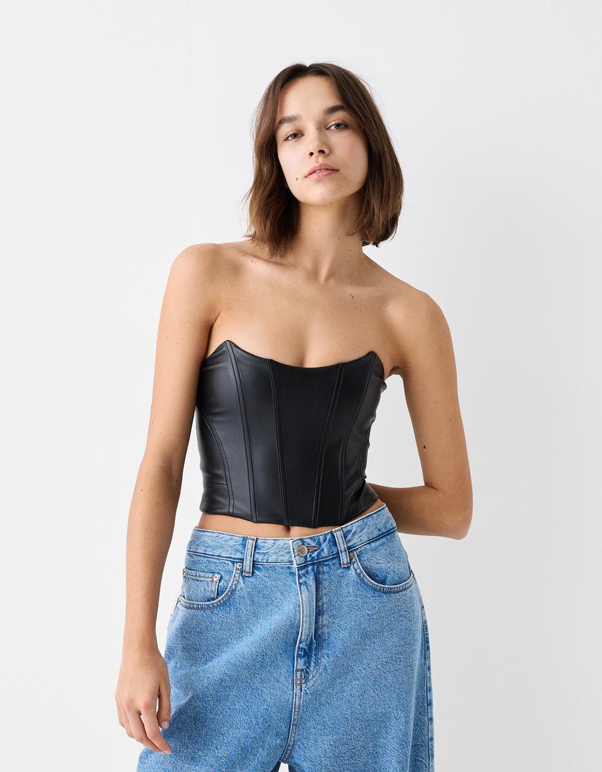 Crop top bandeau efeito pele