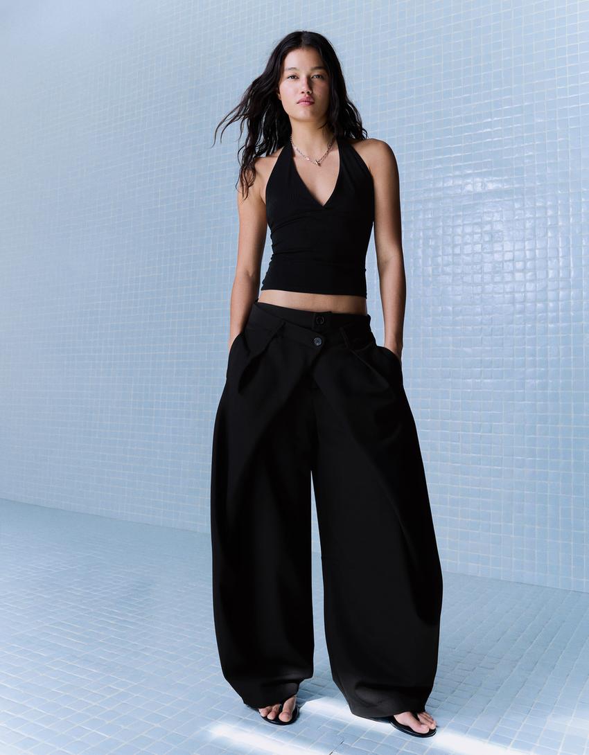 Double-button pleat trousers